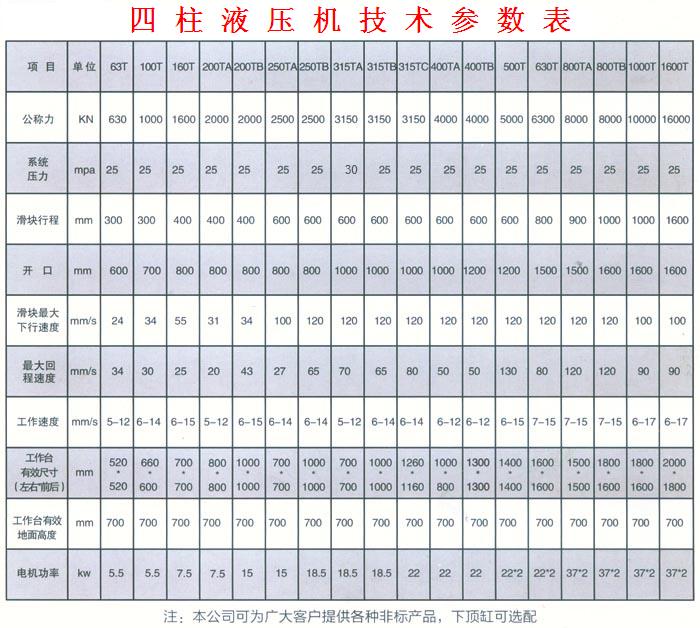 100噸四柱油壓機(四柱液壓機)參數(shù)
